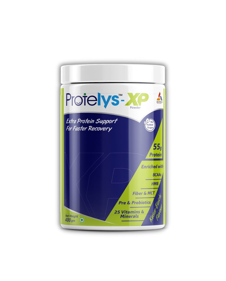 Protelys-XP Powder is an advanced high-protein nutritional supplement formulated to support faster recovery, muscle repair, strength, and overall wellness. It contains a premium blend of whey protein concentrate and hydrolysate, enriched with BCAAs, HMB, fiber, MCTs, pre & probiotics, and 25+ essential vitamins and minerals.